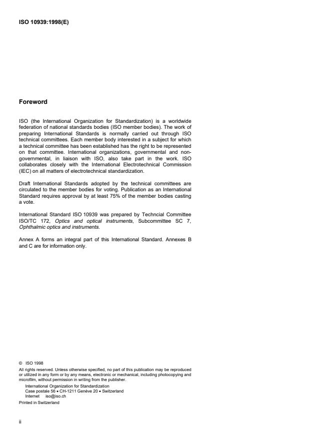 ISO 10939:1998 is classified under the following ICS (International Classification for Standards) categories: 11.040.70 - Ophthalmic equipment. The ICS classification helps identify the subject area and facilitates finding related standards.