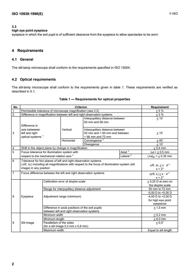 This International Standard, together with ISO 15004, specifies requirements and test methods for slit-lamp