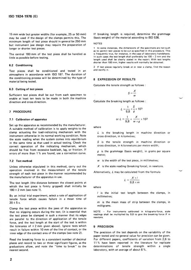 ISO 1924:1976 is a standard published by the International Organization for Standardization (ISO). Its full title is "Paper and board — Determination of tensile strength". This standard covers: Paper and board — Determination of tensile strength