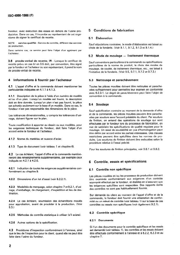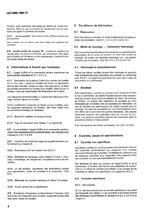 ISO 4990:1986 is a standard published by the International Organization for Standardization (ISO). Its full title is "Steel castings — General technical delivery requirements". This standard covers: Includes the requirements for the selection and preparation of samples and test pieces. When material or product standards differ from this general delivery specification, the material or product standards apply. This standard also specifies a group of supplementary requirements which may be applied to steel castings when additional testing or inspection is desired.
