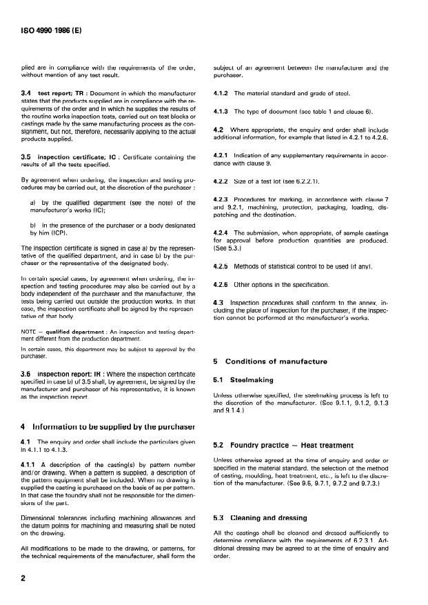 ISO 4990:1986 - Steel castings -- General technical delivery requirements