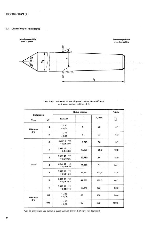 ISO 298:1973 - Machines-outils -- Pointes de tours -- Dimensions d'interchangeabilité