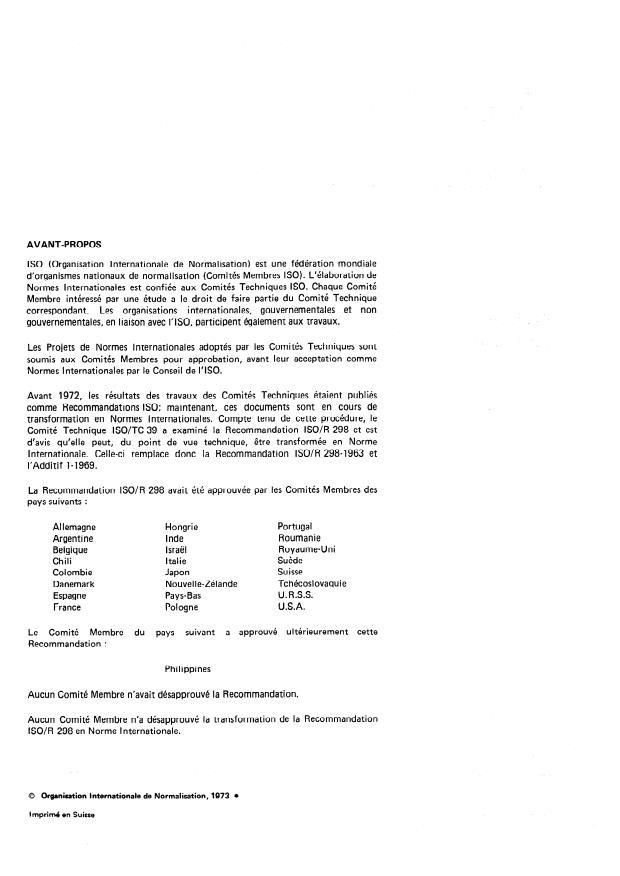 Committee ISO/TC 39 has reviewed IS0 Recommendation R 298 and found it