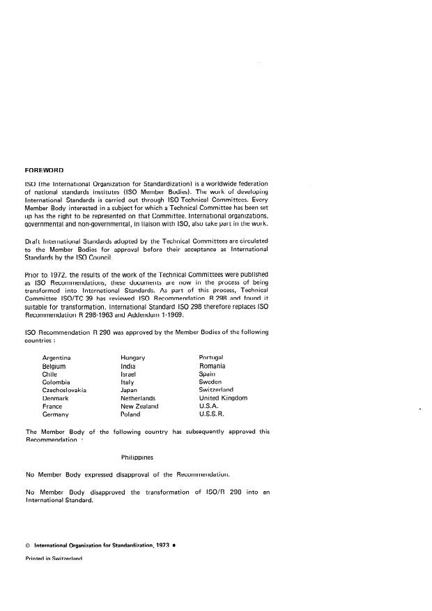 IS0 Recommendation R 298 was approved by the Member Bodies of the following