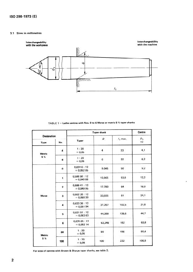 - Table 1 - sizes in millimetres for centres with Nos. 0 to 6 Morse or metric 5% taper shanks.