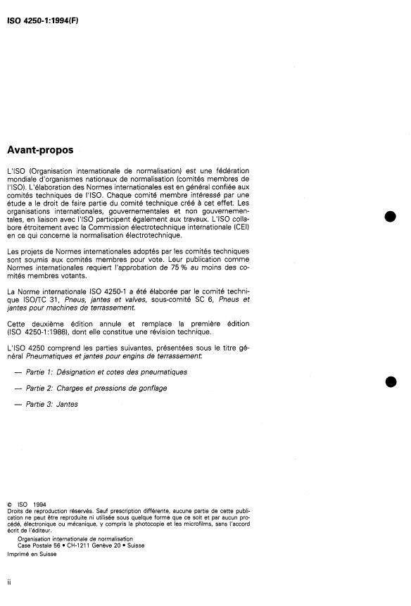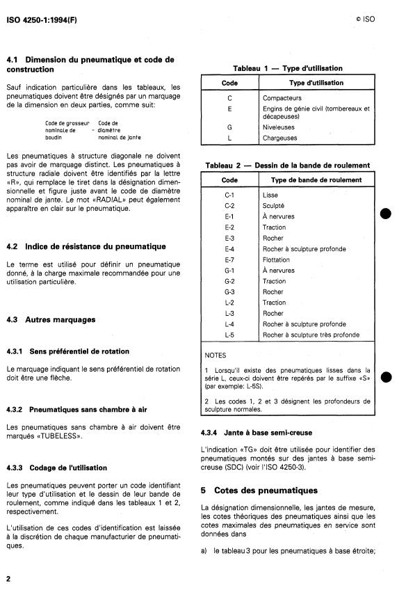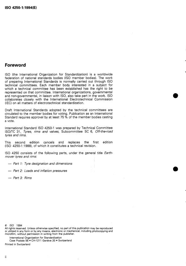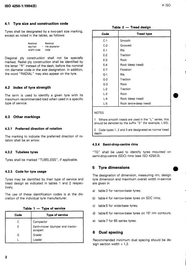 ISO 4250-1:1994 is a standard published by the International Organization for Standardization (ISO). Its full title is "Earth-mover tyres and rims — Part 1: Tyre designation and dimensions". This standard covers: Earth-mover tyres and rims — Part 1: Tyre designation and dimensions