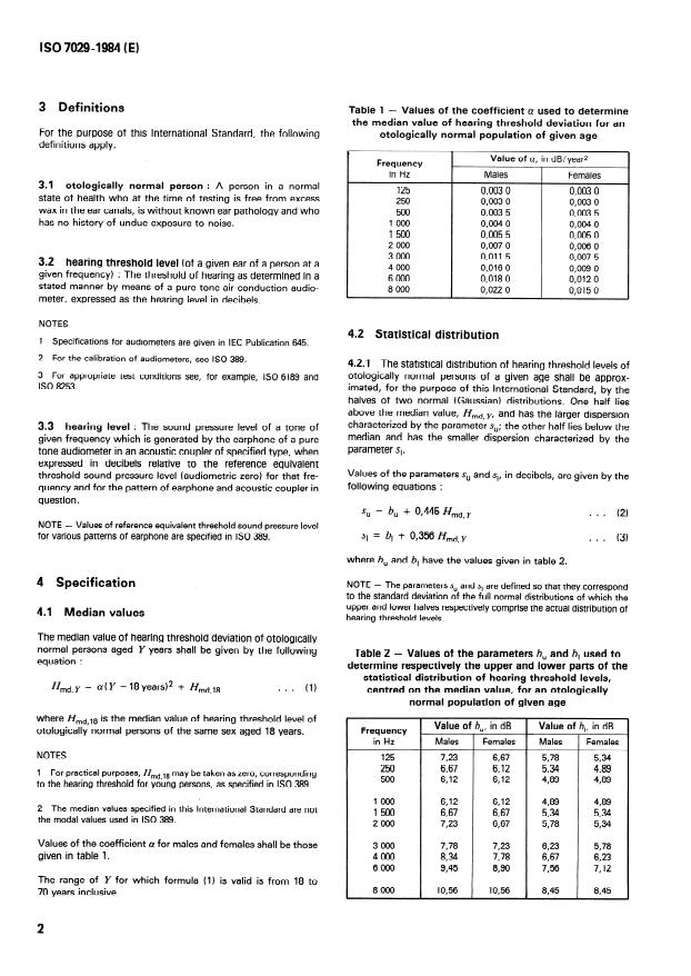 ISO 7029:1984 is a standard published by the International Organization for Standardization (ISO). Its full title is "Acoustics — Threshold of hearing by air conduction as a function of age and sex for otologically normal persons". This standard covers: Acoustics — Threshold of hearing by air conduction as a function of age and sex for otologically normal persons