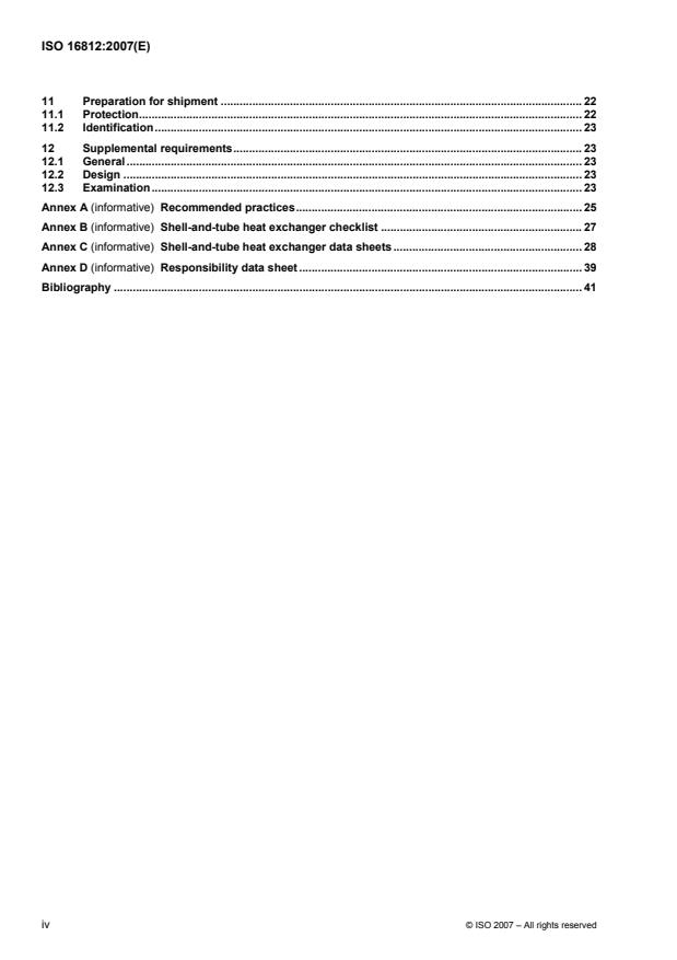 ISO 16812:2007 specifies requirements and gives recommendations for the mechanical design, material selection, fabrication, inspection, testing and preparation for shipment of shell-and-tube heat exchangers for the petroleum, petrochemical and natural gas industries. ISO 16812:2007 is applicable to the following types of shell-and-tube heat exchangers: heaters, condensers, coolers and reboilers. ISO 16812:2007 is not applicable to vacuum-operated steam surface condensers and feed-water heaters.