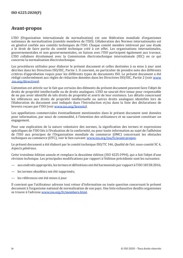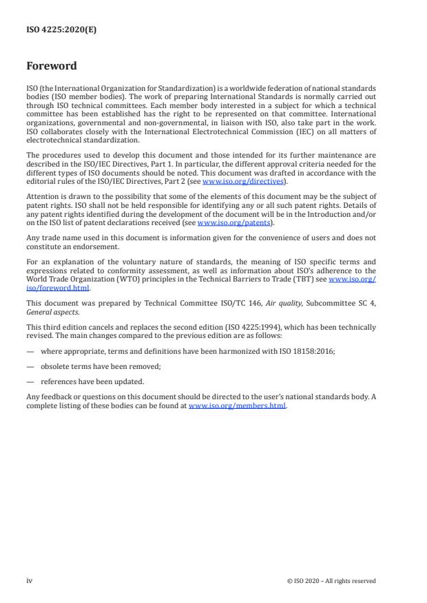 Keywords: ISO 4225:2020, air quality vocabulary, air pollutant definitions, aerosol terminology, sampling methods, measurement methods, ambient air, indoor air, workplace air.