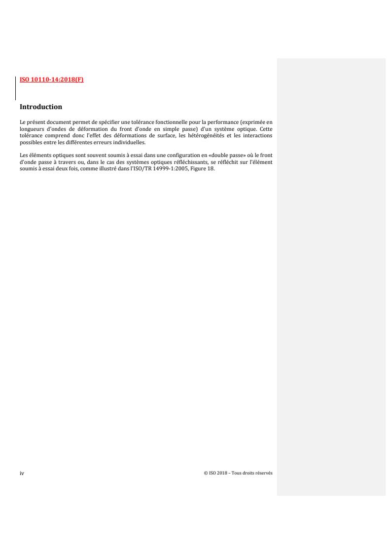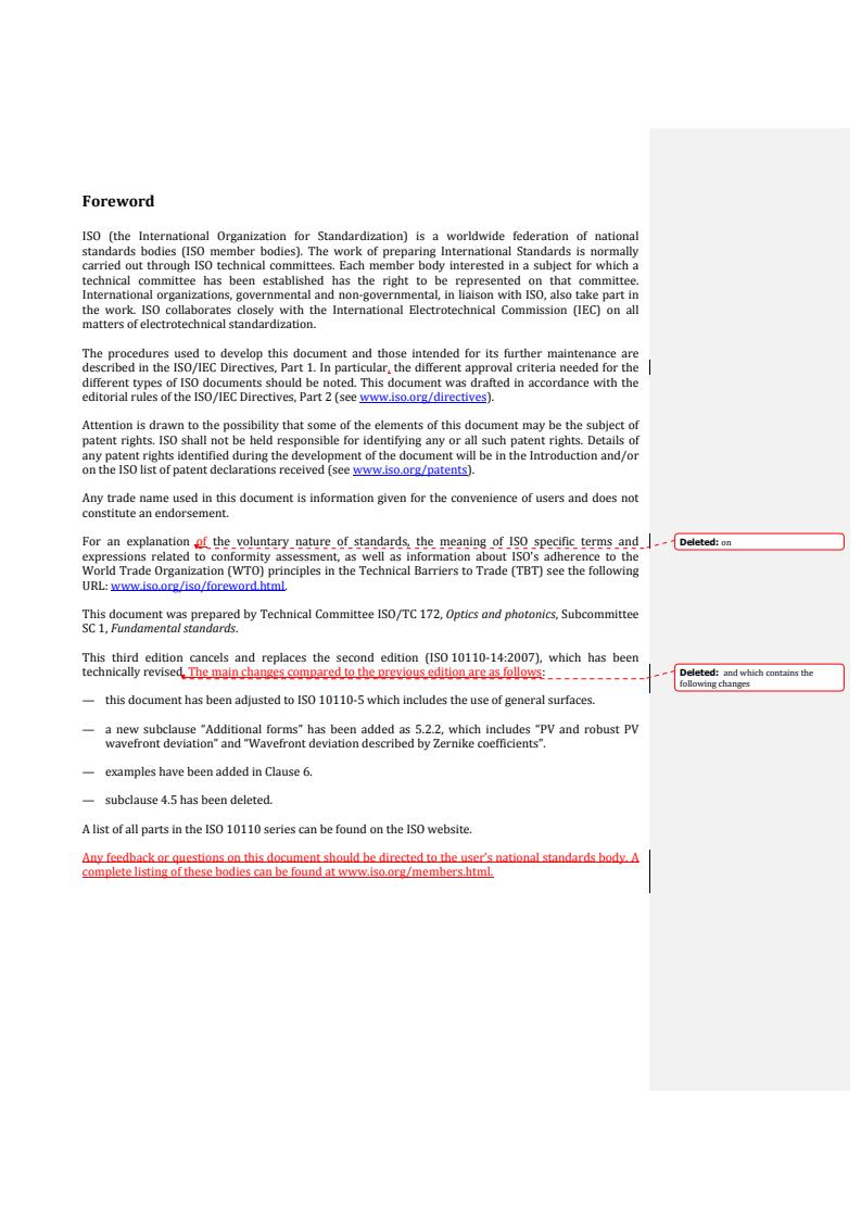 REDLINE ISO 10110-14:2018 - Optics and photonics — Preparation of drawings for optical elements and systems — Part 14: Wavefront deformation tolerance Released:10/25/2018