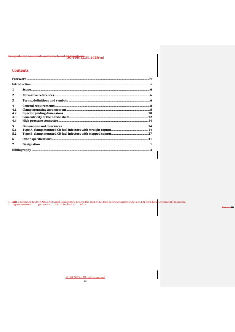 REDLINE ISO/FDIS 12251 - Diesel engines — Clamp mounted CR fuel injectors — Mounting dimensions Released:9/26/2025