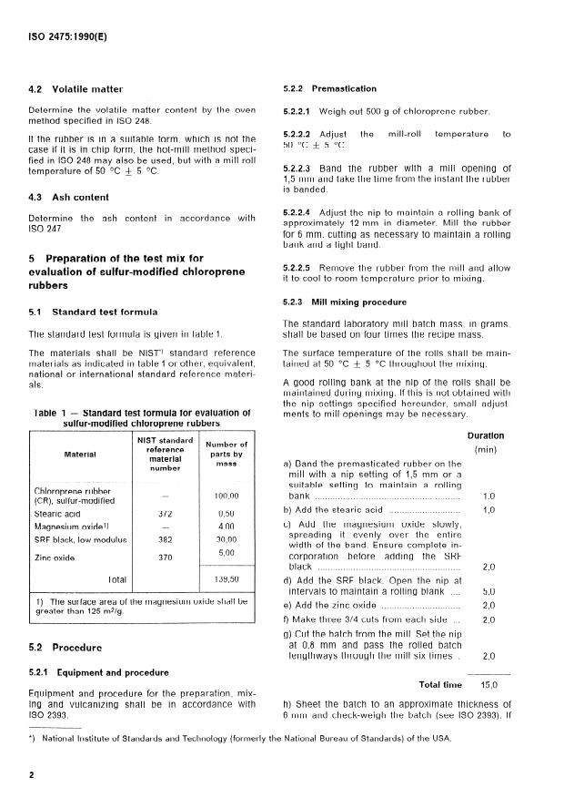 General purpose chloroprene rubbers fall into three ISO 2393:1973, Rubber test mixes _ Preparation,