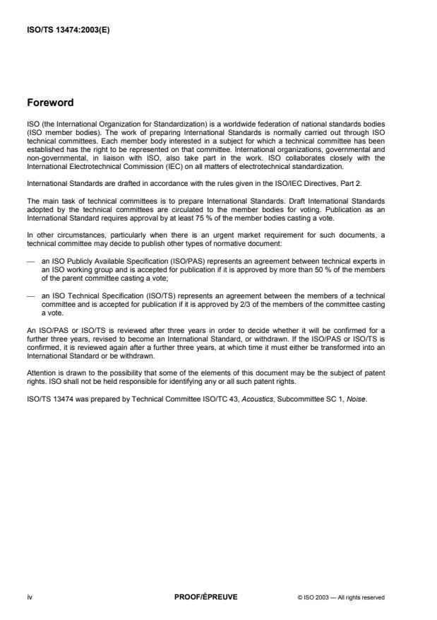 ISO/TS 13474:2003 is classified under the following ICS (International Classification for Standards) categories: 17.140.01 - Acoustic measurements and noise abatement in general. The ICS classification helps identify the subject area and facilitates finding related standards.