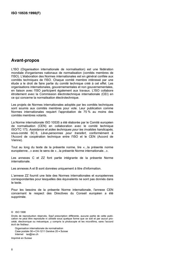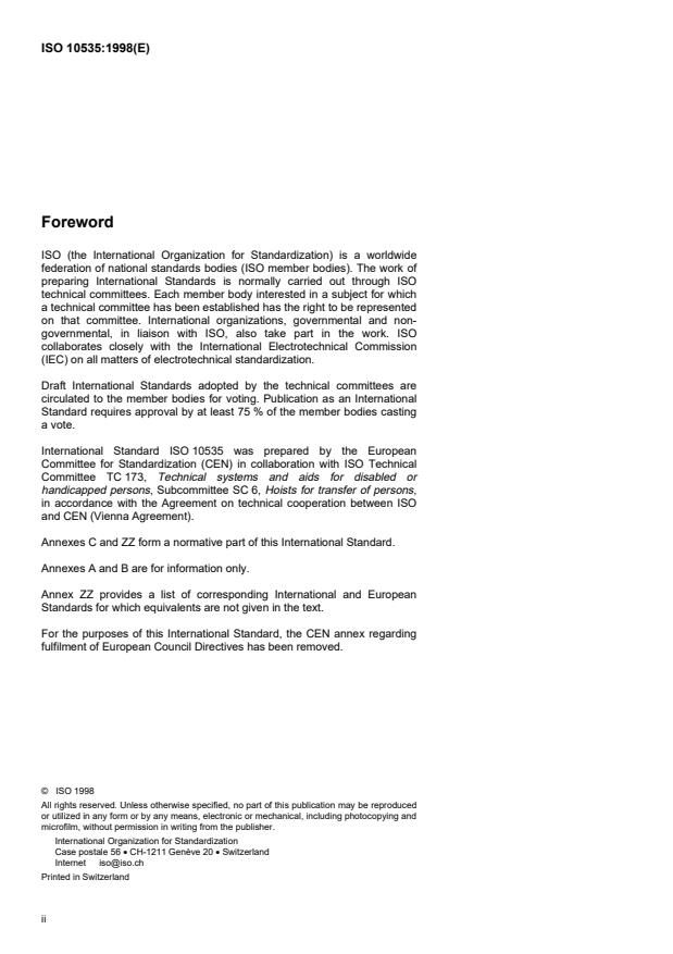 ISO 10535:1998 - Leve-personnes pour transférer des personnes handicapées -- Exigences et méthodes d'essai