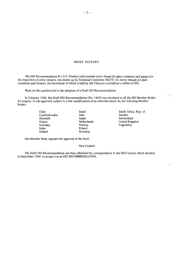 In February 1968, this Draft IS0 Recommendation (No. 1469) was circulated to all the IS0 Member Bodies