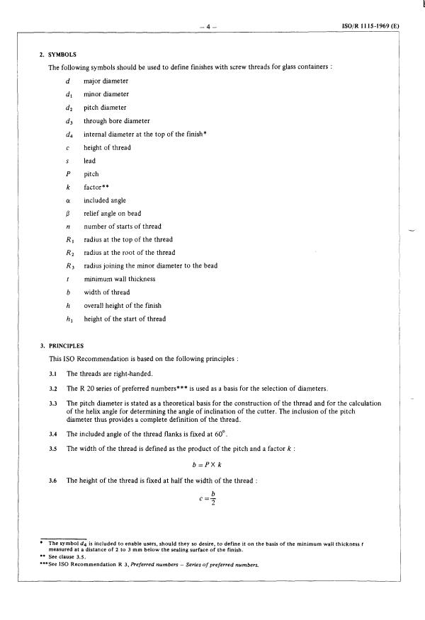 The IS0 Recommendation R 1 1 15, Finishes with external screw thread for glass containers and gauges for