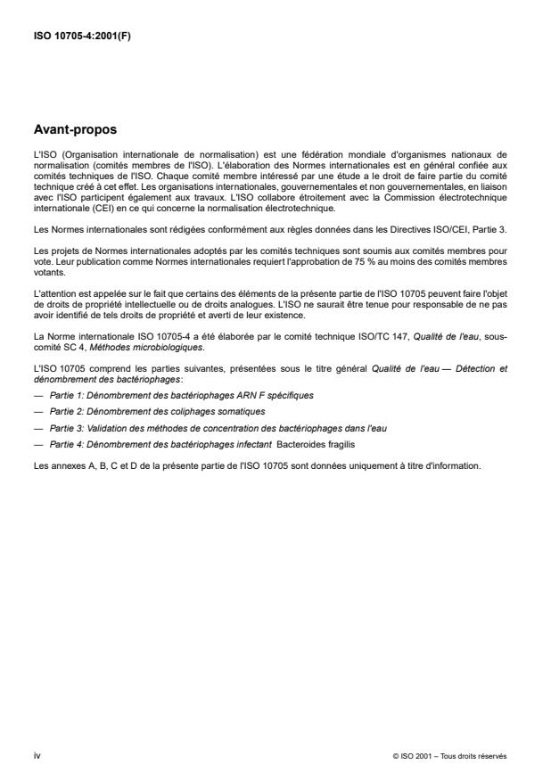 ISO 10705-4:2001 - Qualité de l'eau -- Détection et dénombrement des bactériophages