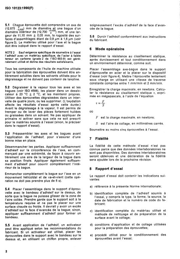 5.1 Chaque éprouvette doit comprendre un axe de soigne usement l’excès d’adhésif de la face d’avan-