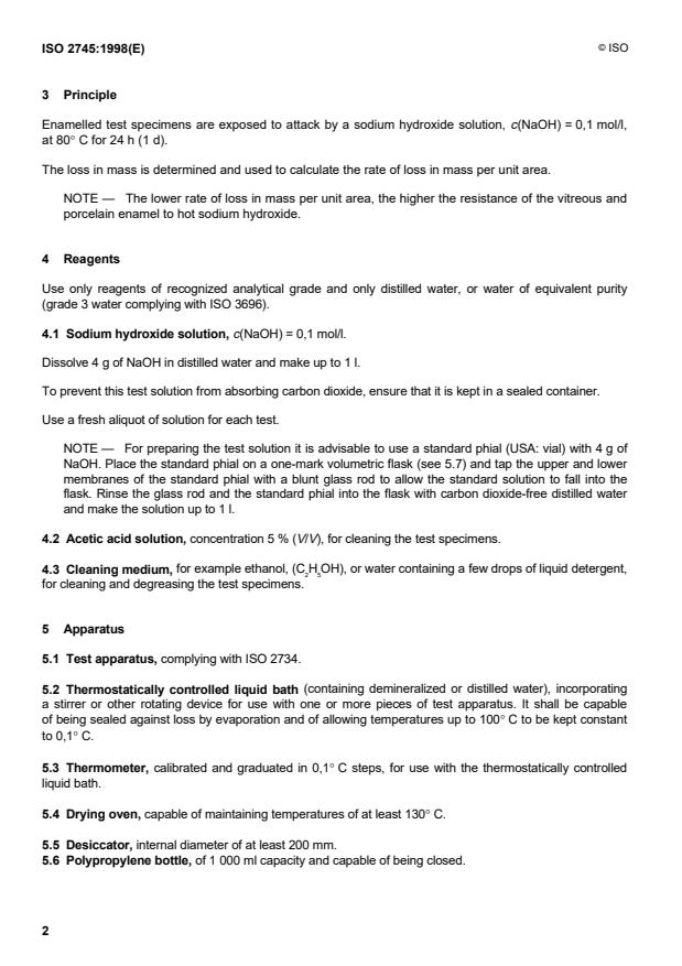 ISO 2745:1998 - Vitreous and porcelain enamels -- Determination of resistance to hot sodium hydroxide