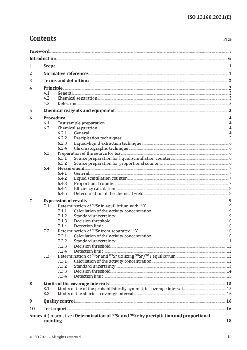 Keywords: ISO 13160:2021, strontium 90, strontium 89, liquid scintillation counting, proportional counting, water quality, radionuclide monitoring, detection limit, chemical separation, emergency monitoring.