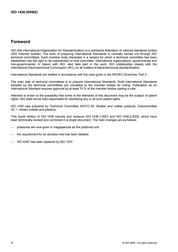 ISO 1436:2009 specifies requirements for six types of wire-braid-reinforced hose and hose assembly of nominal size from 5 to 51 plus, for one of the five types (type R2ATS), nominal size 63. They are suitable for use with water-based hydraulic fluids HFC, HFAE, HFAS and HFB as defined in ISO 6743‑4 at temperatures ranging from to -40 °C to +60 °C or oil-based hydraulic fluids HH, HL, HM, HR and HV as defined in ISO 6743‑4 at temperatures ranging from -40 °C to +100 °C. This International Standard does not include requirements for end fittings. It is limited to requirements for hoses and hose assemblies.