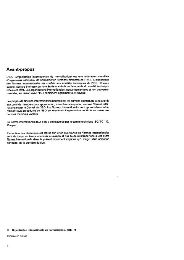 ISO 5199:1986 - Spécifications techniques pour pompes centrifuges -- Classe II