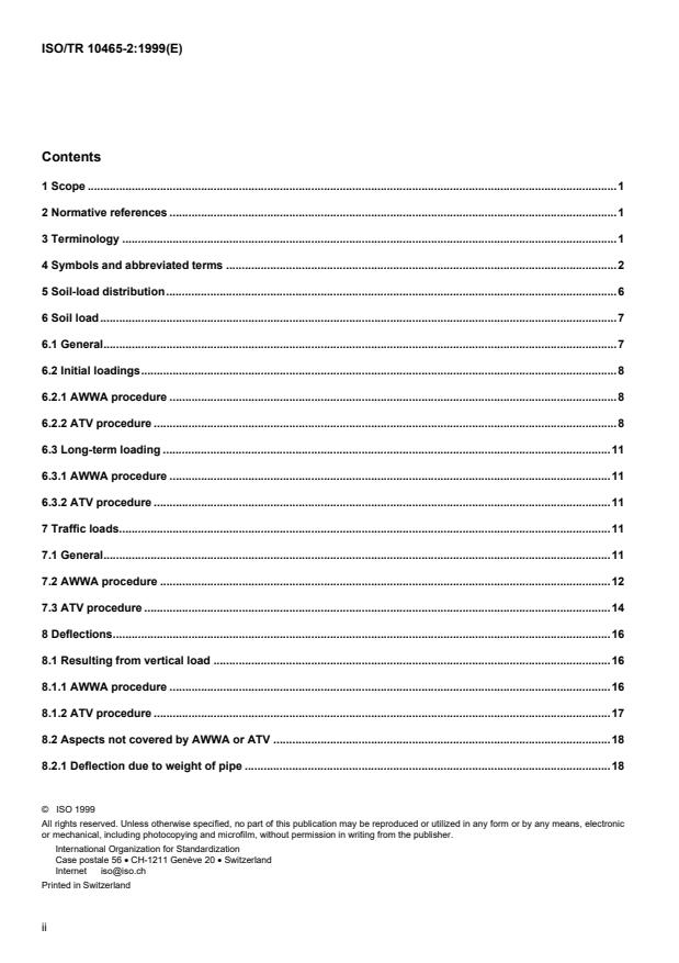 ISO/TR 10465-2:1999 is a technical report published by the International Organization for Standardization (ISO). Its full title is "Underground installation of flexible glass-reinforced thermosetting resin (GRP) pipes — Part 2: Comparison of static calculation methods". This standard covers: Underground installation of flexible glass-reinforced thermosetting resin (GRP) pipes — Part 2: Comparison of static calculation methods