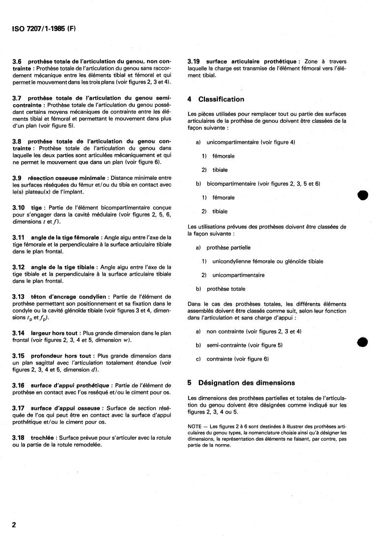 La présente partie de I'ISO 7207 spécifie la classification des lienne ou glénoïde tibiale de l'articulation du genou :