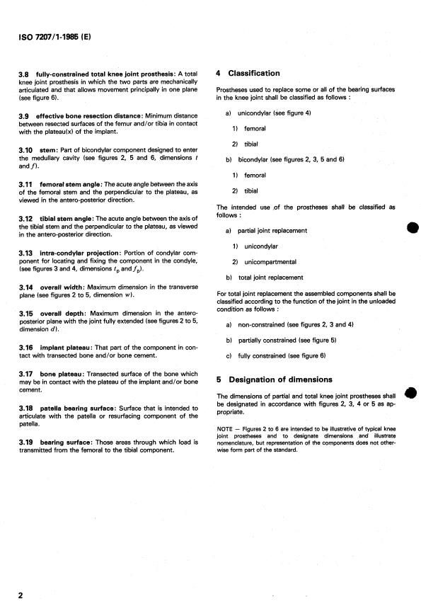 ISO 7207-1:1985 - Implants for surgery -- Partial and total knee joint prostheses