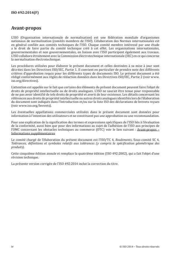 ISO 492:2014 - Roulements -- Roulements radiaux -- Spécification géométrique des produits (GPS) et valeurs de tolérance