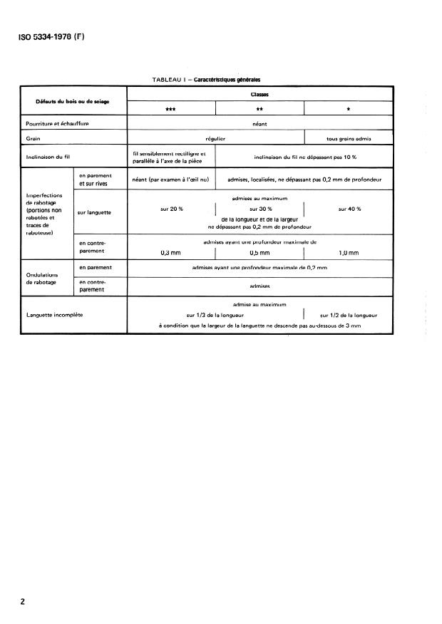 ISO 1072, Parquet en bois massif - Caractéristiques