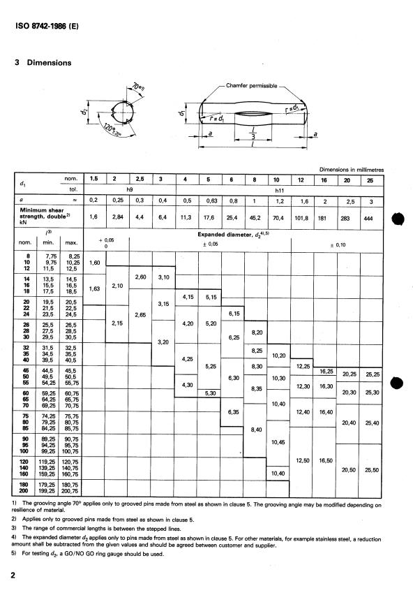 cause a positive locking fit when these grooved pins are forced into a drilled hole equal to the nominal diameter dl (see clause 4).