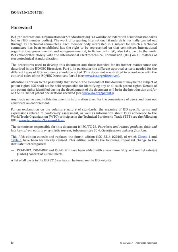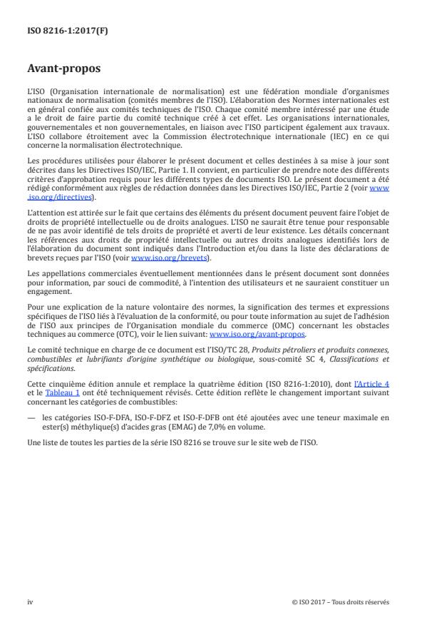 Cette cinquième édition annule et remplace la quatrième édition (ISO 8216-1:2010), dont l'Article 4