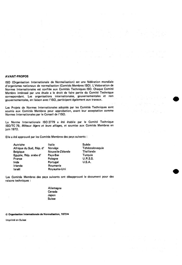 CDU 669.7 15.3.01 8.23 Réf. NO : IS0 2779-1973 (F)