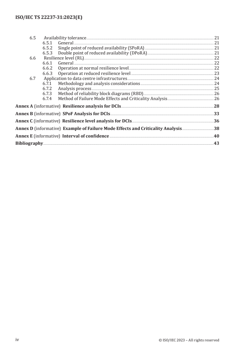 Keywords: ISO/IEC TS 22237-31:2023, data centre resilience, KPIs, data centre infrastructure (DCI), fault tolerance, dependability, availability tolerance, resilience levels.