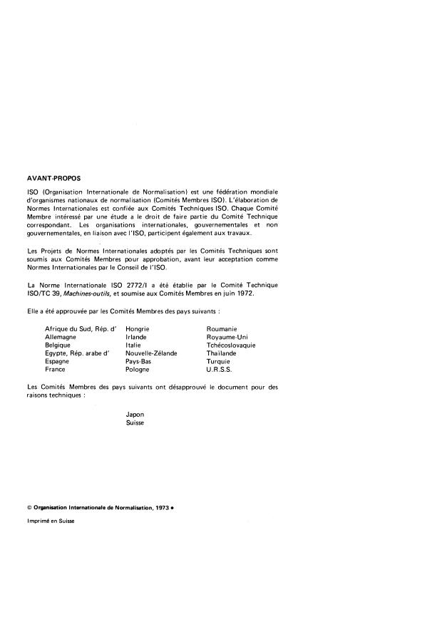 lSO/TC 39, Machines-outils, et soumise aux Comités Membres en juin 1972.