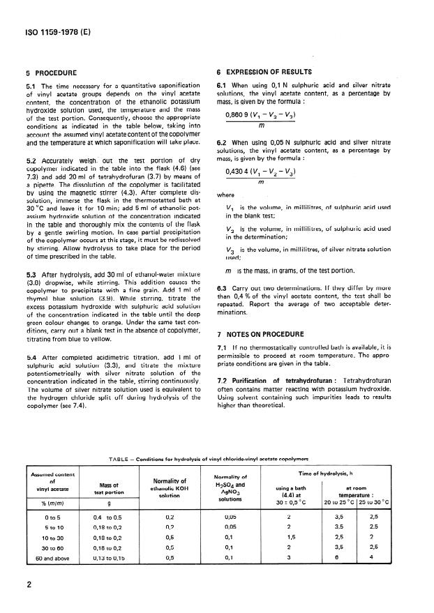 ISO 1159:1978 is a standard published by the International Organization for Standardization (ISO). Its full title is "Plastics — Vinyl chloride-vinyl acetate copolymers — Determination of vinyl acetate". This standard covers: Plastics — Vinyl chloride-vinyl acetate copolymers — Determination of vinyl acetate