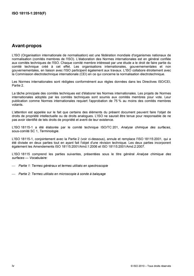 L'ISO 18115 est un vocabulaire, publié en deux parties, qui définit les termes relatifs à l'analyse chimique des surfaces. L'ISO 18115-1:2010 couvre les termes généraux et ceux utilisés en spectroscopie tandis que l'ISO 18115-2:2010 couvre les termes relatifs à la microscopie à sonde à balayage.