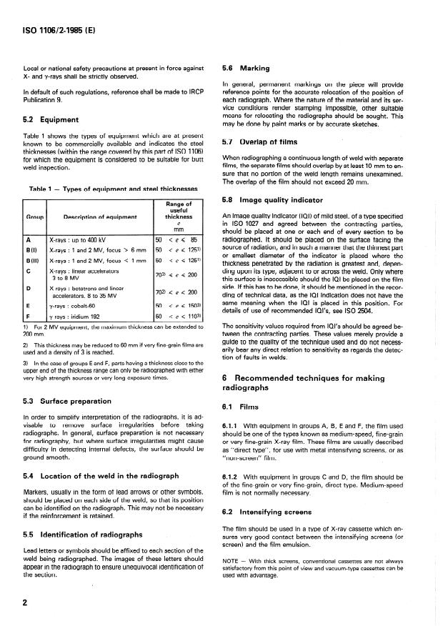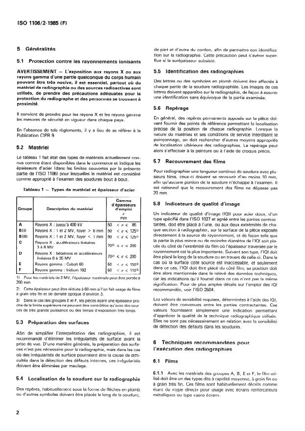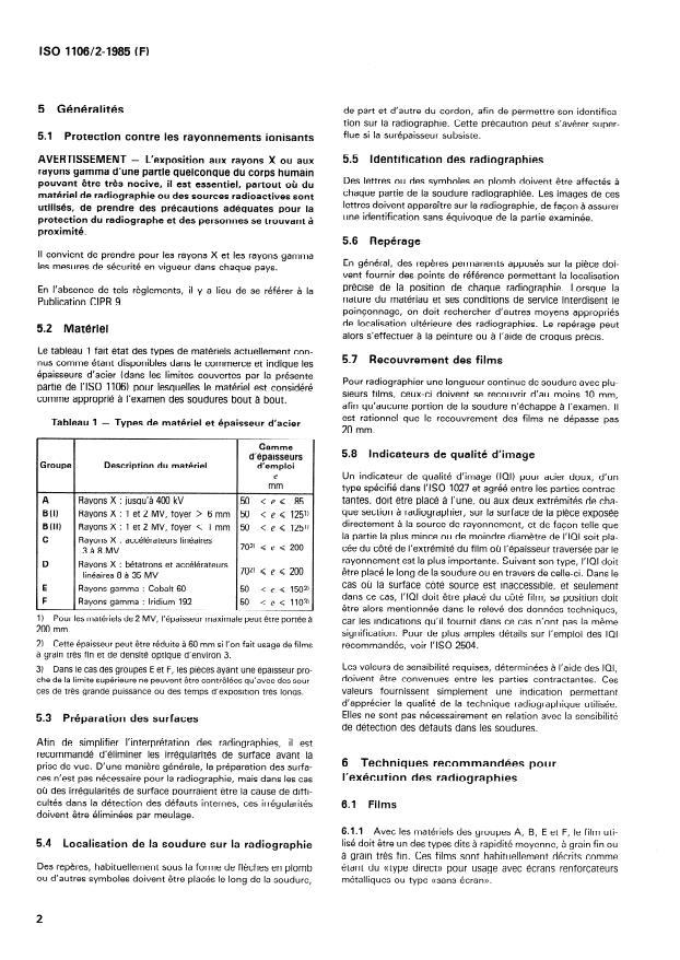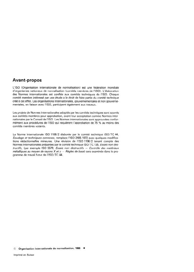 ISO 1106-2:1985 - Pratiques recommandées pour l'examen radiographique de joints soudés par fusion