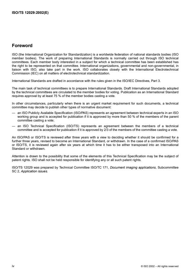 ISO/TS 12029 was prepared by Technical Committee ISO/TC 171, Document imaging applications, Subcommittee