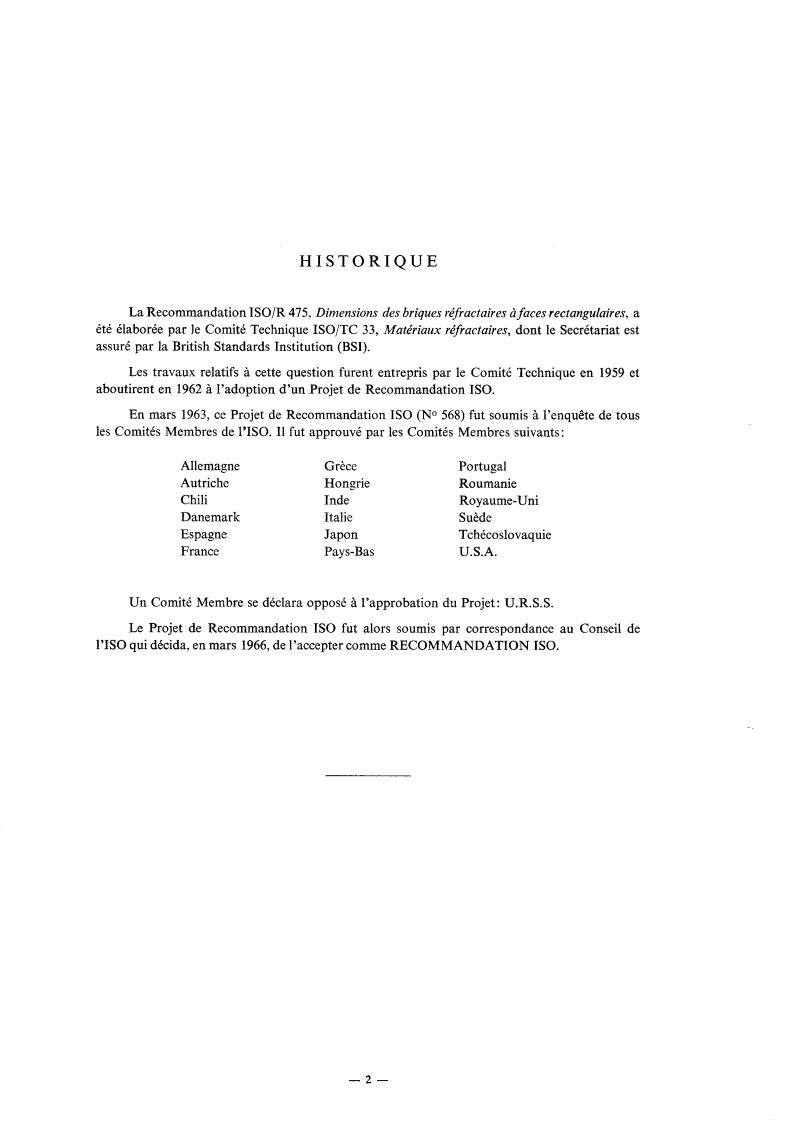 En mars 1963, ce Projet de Recommandation IS0 (NO 568) fut soumis à l’enquête de tous