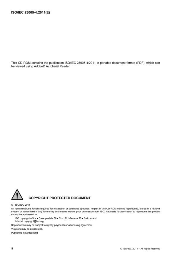 This CD-ROM contains the publication ISO/IEC 23005-4:2011 in portable document format (PDF), which can