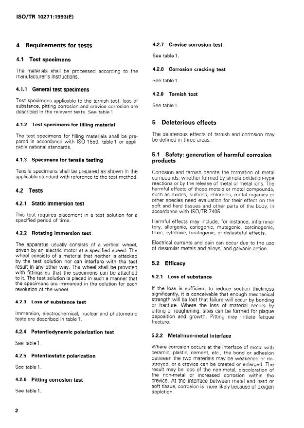 ISO/TR 10271:1993 is a technical report published by the International Organization for Standardization (ISO). Its full title is "Dentistry — Determination of tarnish and corrosion of metals and alloys". This standard covers: Dentistry — Determination of tarnish and corrosion of metals and alloys