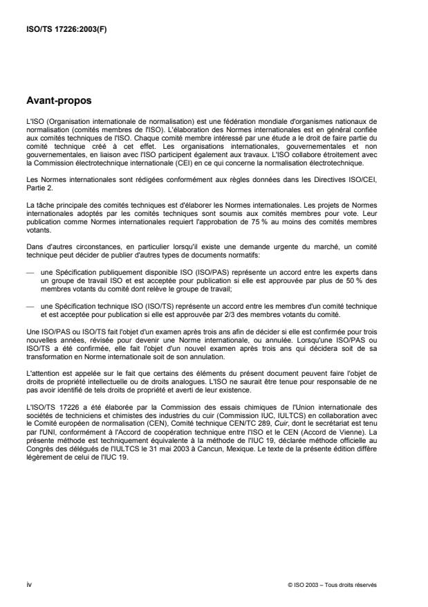 ISO/TS 17226:2003 - Cuir -- Essais chimiques -- Dosage du formaldéhyde