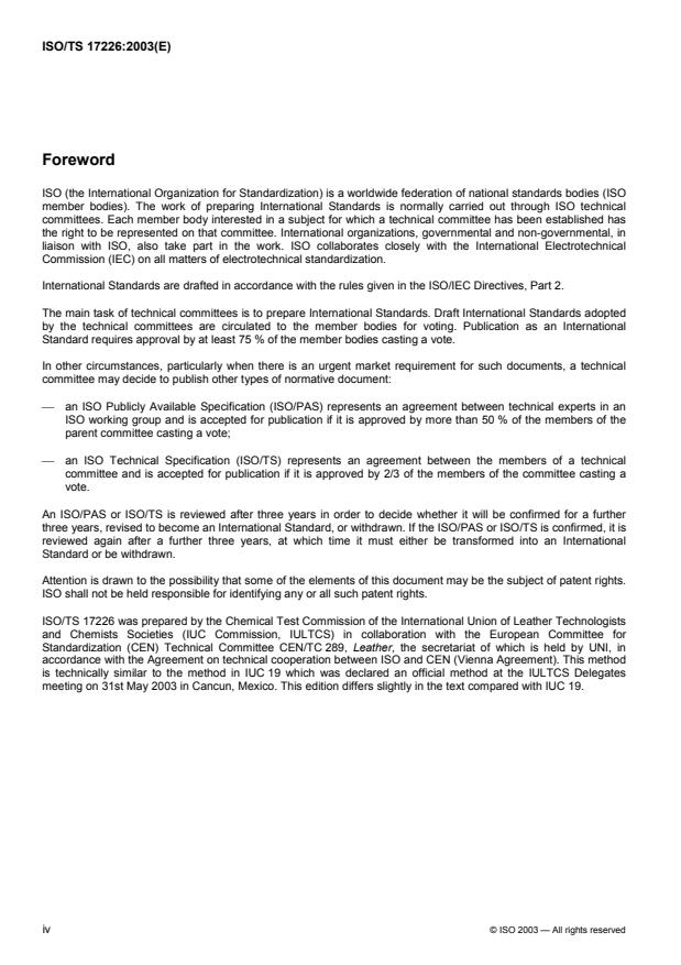 ISO/TS 17226:2003 - Leather -- Chemical tests -- Determination of formaldehyde content