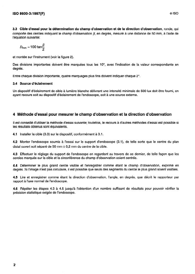 Optique et instruments d'optique — Endoscopes médicaux et leurs accessoires — Partie 3: Détermination du champ d'observation et de la direction d'observation des endoscopes optiques