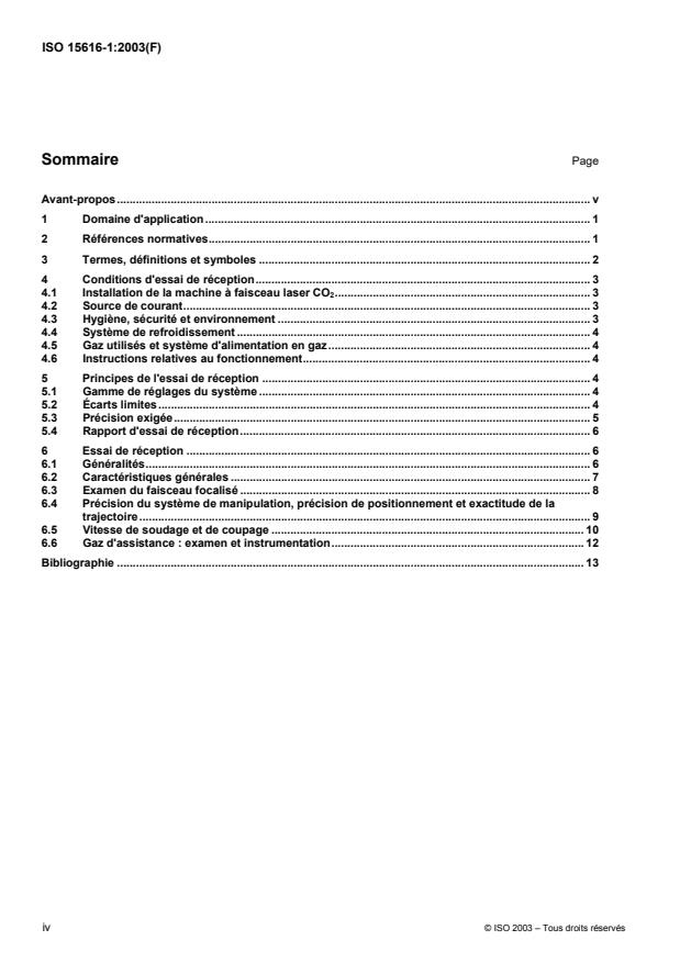 ISO 15616-1:2003 - Essais de réception des machines de soudage et de coupage de qualité par faisceau laser CO2