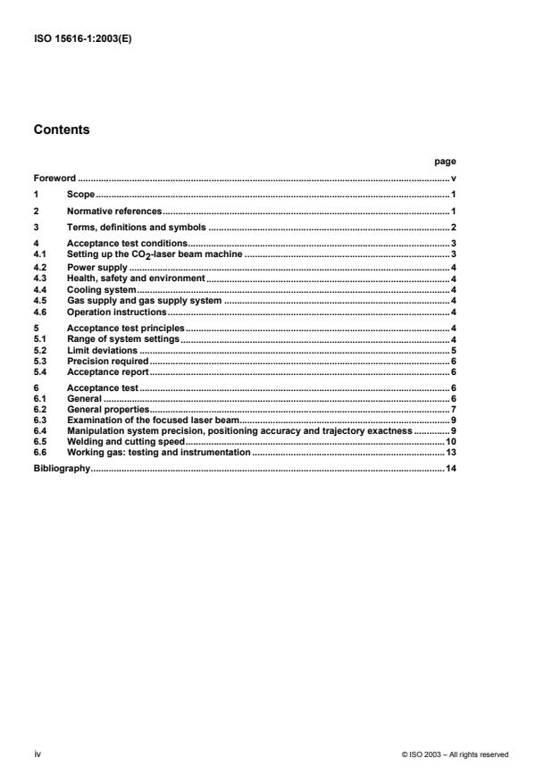 - Scope and purpose: Applies to CO2-laser beam machines operating in two directions (2D) for high‑quality welding and cutting; specifies basic acceptance requirements and test documentation.