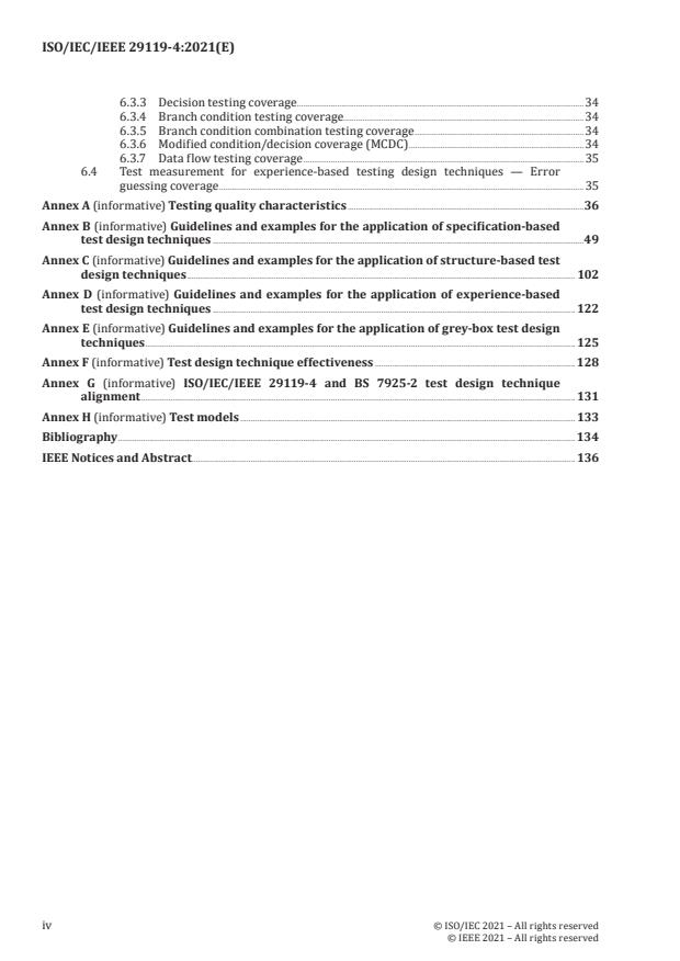 ISO/IEC/IEEE 29119-4:2021 - "Software and systems engineering - Software testing - Part 4: Test techniques" is an international standard that defines a comprehensive set of test design techniques for use during the test design and implementation process specified in ISO/IEC/IEEE 29119‑2. The document describes widely accepted specification‑based, structure‑based and experience‑based testing methods, guidance on test coverage measurement, and informative annexes with examples and mappings (including alignment to BS 7925‑2). The 2021 second edition replaced the earlier “test conditions” approach with test models to improve usability.