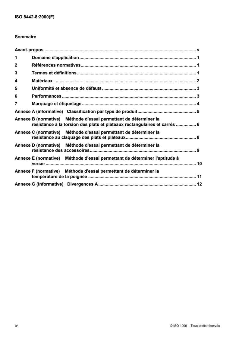 Keywords: ISO 8442-8:2000, silver table holloware, silver decorative holloware, cutlery standard, materials in contact with foodstuffs, holloware performance tests, pouring test, attachment strength.